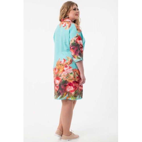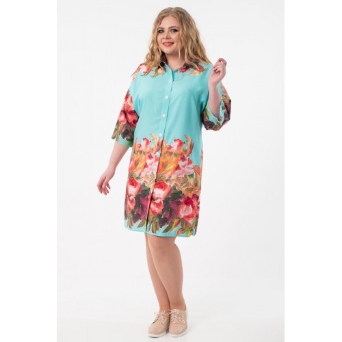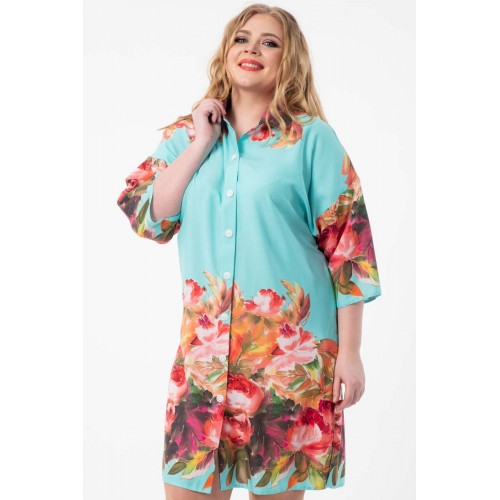 Великолепная рубашка прямого силуэта из текстильного полотна мятного цвета. Круглый вырез изделия обработан отложным воротничком. Рубашка с втачными рукавами. По переду изделия планка с застежкой на пуговицы.