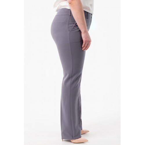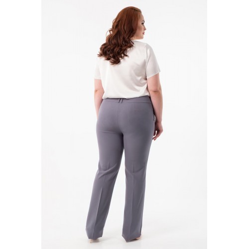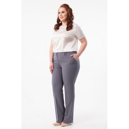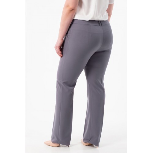Классические прямые брюки из плотного текстильного полотна серого цвета. Брюки со шлевками, застежко..
