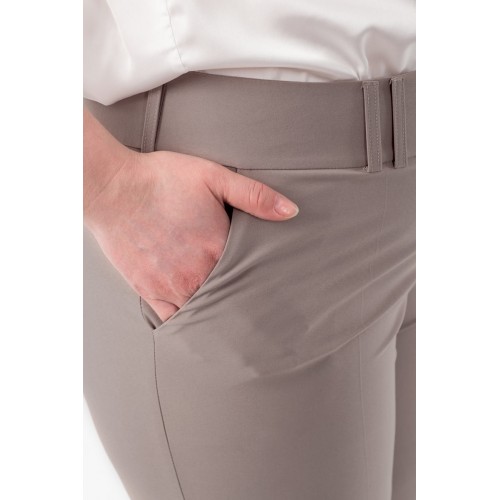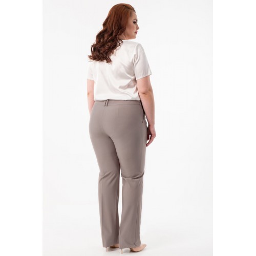Классические прямые брюки из плотного текстильного полотна серого цвета. Брюки со шлевками, застежко..