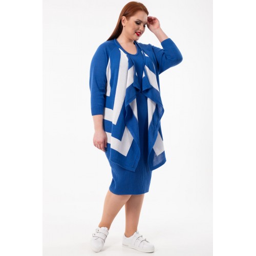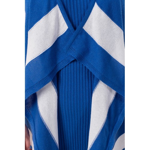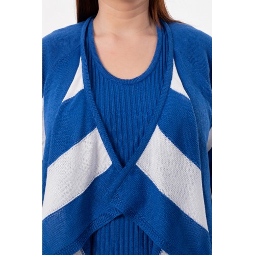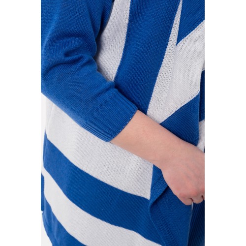 Яркий кардиган полуприлегающего силуэта сине-белого цвета. Кардиган выполнен в технике «ручного вяза..