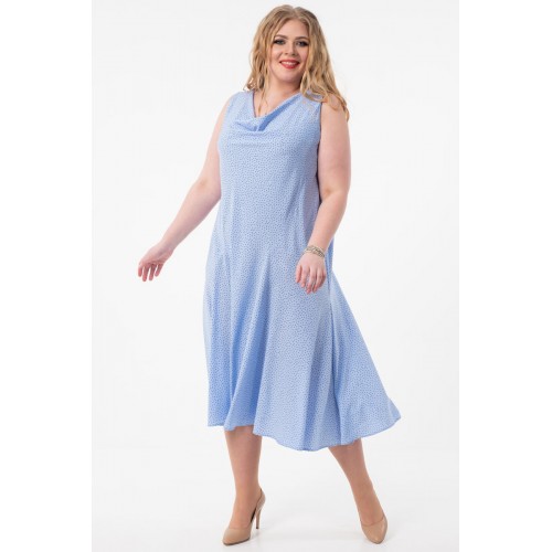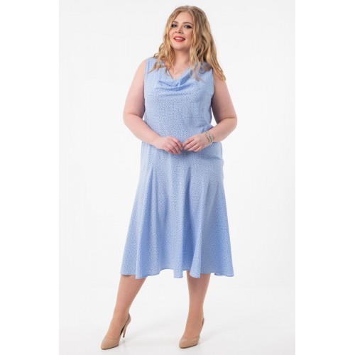 Обаятельное платье полуприлегающего силуэта из текстильного полотна голубого цвета. Фигурный вырез и..