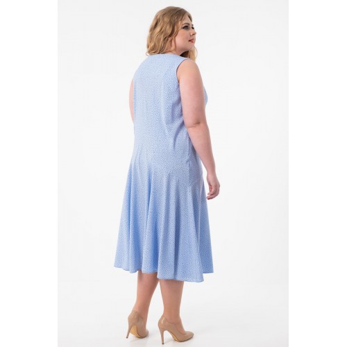 Обаятельное платье полуприлегающего силуэта из текстильного полотна голубого цвета. Фигурный вырез и проймы рукавов обработаны внутренней обтачкой. Юбка изделия дополнена клиньями. Рост фотомодели — 170 см. Производство Россия.