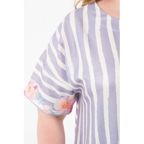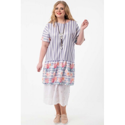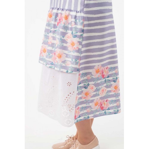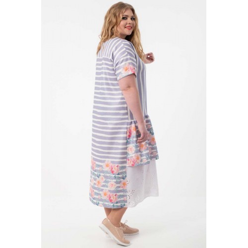 Обаятельное платье полуприлегающего силуэта из текстильного полотна с купонным рисунком сиренево-бел..