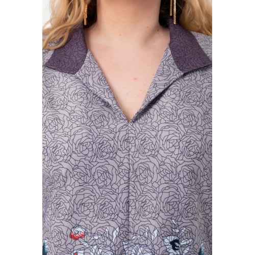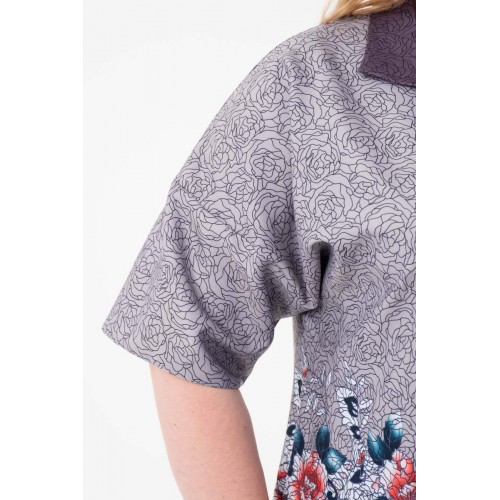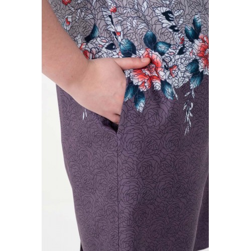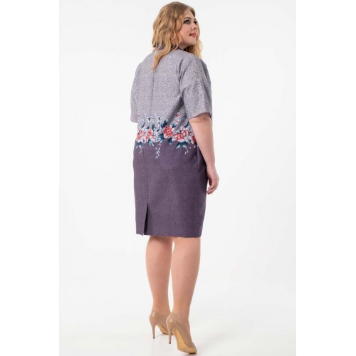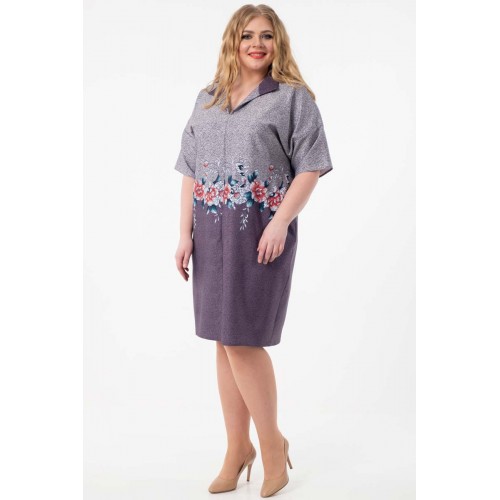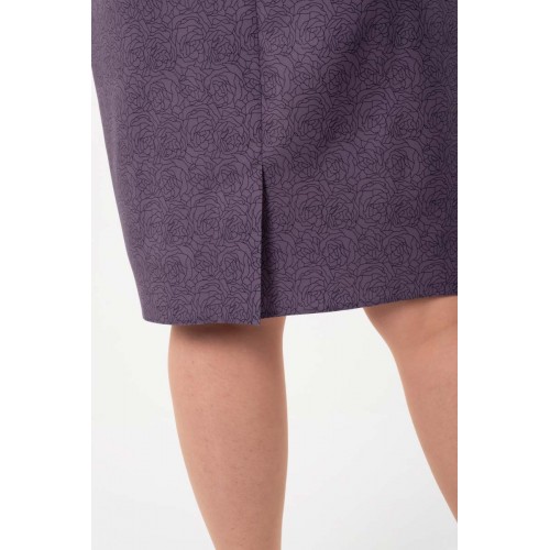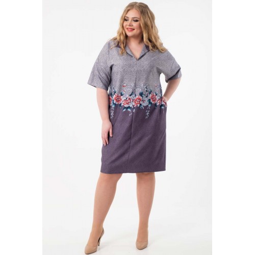 Женственное платье полуприлегающего силуэта из текстильного полотна с купонным рисунком фиолетового цвета. Платье с отложным воротником, втачными рукавами и карманами. Рост фотомодели - 170 см. Производство Россия.