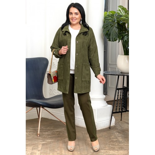 Длина по спине около 82 см, без подкладки, застегивается на пуговицы, два накладных кармана, регулируемая длина рукава